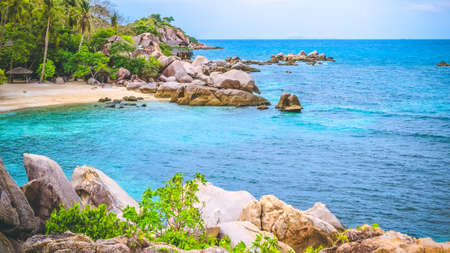 Costline of Koh Tao Islands in Thailand. Granite Rocks and blue lagoon with clear sea water