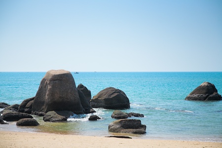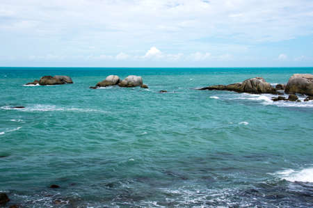 Blue sea with large boulders in the water. beautiful seascape. Travel and tourism.