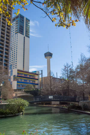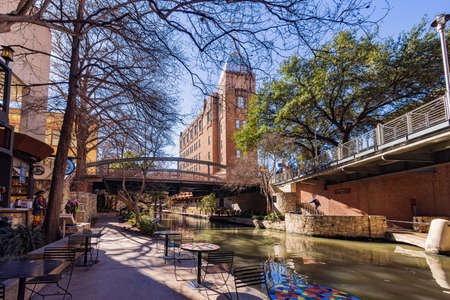 Texas, FEB 5 2022 - Sunny view of Riverwalk