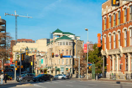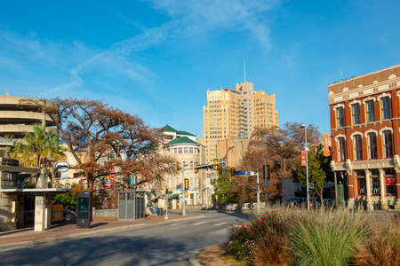 Historic buildings on E Commerce Street at Alamo Plaza in San Antonio, Texas, USA.