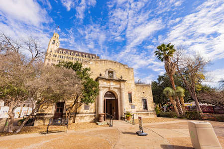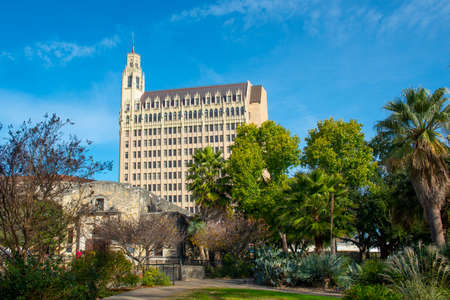 Texas, FEB 4 2022 - Sunny view of The garden of Alamo