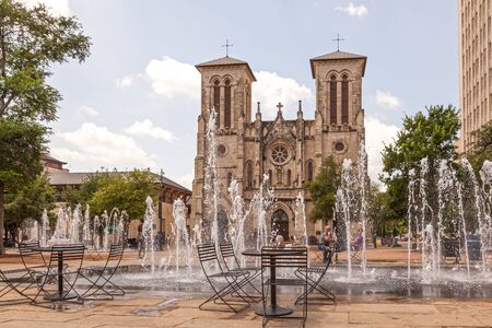 SAN ANTONIO, USA - APR 11: The Cathedral of San Fernando and a fountain in San Antonio, Texas. April 11, 2016 in San Antonio, Texas, USA