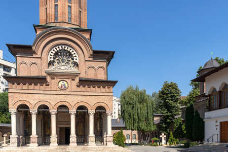 BUCHAREST, ROMANIA - AUGUST 16, 2021: Medieval Antim monastery of All Saints in city of Bucharest, Romania