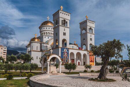 Bar, Montenegro - June, 5th, 2016. Christian orthodox church of Saint Jovan Vladimir also known as cathedral Of St. John Vladimir. Architectural landmark in New Bar city.