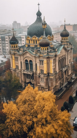Generative AI : Famous orthodox Church of the Three Saints in Chernivtsi city Ukraine in the yard of Chernivtsi National University