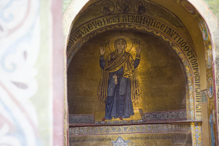 KYIV, UKRAINE - September 11 2022: Interior of the Orthodox Cathedral of Kyiv. Orthodox pattern