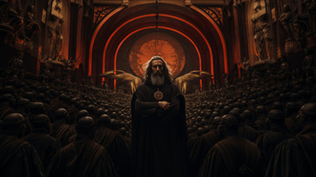 Mystical Reverie: Priest's Silhouette Engulfed by Sun Rays