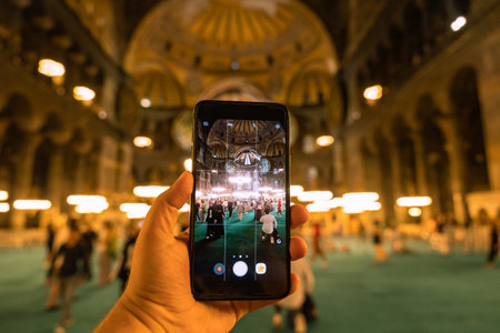 Travel to Istanbul background photo. Taking photo of Hagia Sophia or Ayasofya Mosque. Istanbul Turkey - 8.12.2022