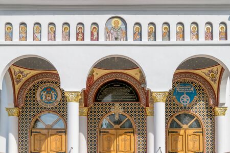 Facade of a typical Greek orthodox church, Meteora, Greece.