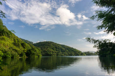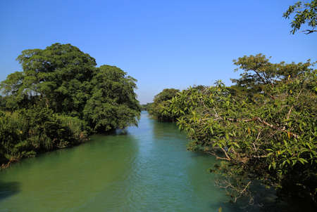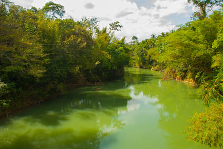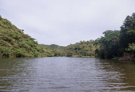 Beautiful river on a background of green bushes with trees, Bohol Island, Philippines. Southeast Asia