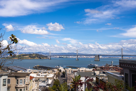 SAN FRANCISCO, USA - OCTOBER 16, 2021, historic skyline, panoramic street view, overlooking San Francisco Bay.