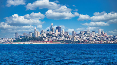 Beautiful view of San Francisco skyline at daytime with waterfront, California, USA