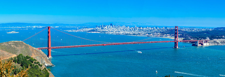 Panorama of the Gold Gate Bridge and the other side of the bay. San Francisco, California, USA.
