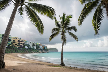 Tropical beach with waves and palm trees