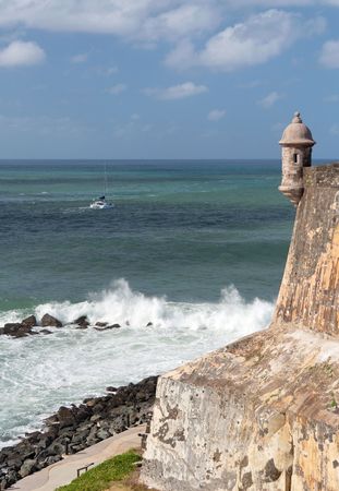 Watch tower in El Morro castle at old San Juan, Puerto Rico. Summer day