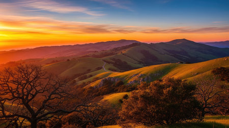 Beautiful sunset over rolling hills in the Sierra Nevada mountains, California