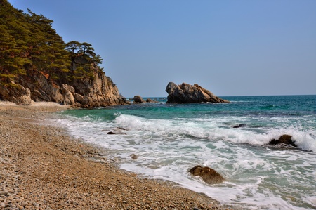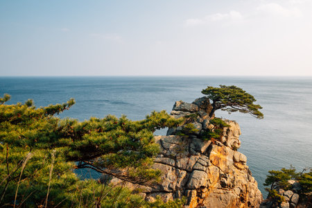 Hajodae sea and rocky cliffs with pine trees in Yangyang, Korea