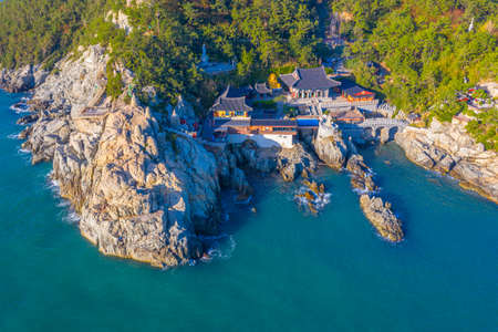Aerial view of Haedong Yonggungsa temple in the republic of Korea