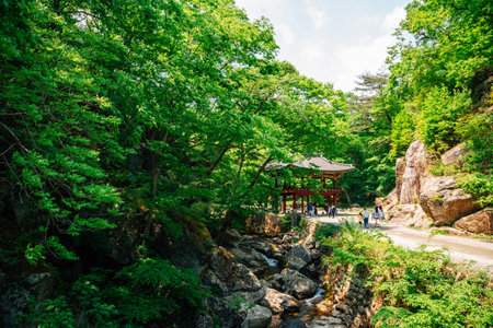 Odaesan National Park creek and waterfall scene. This is the famous Sogeum River (Salt River) near the Gangneung area. Taken during summer.