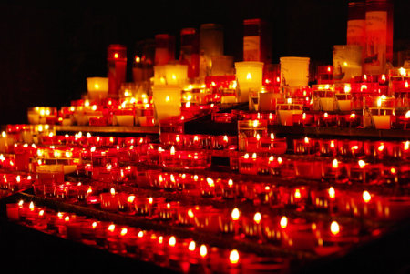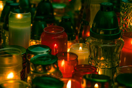 Church candles in catholic, memorial service for dead people, accident, disaster