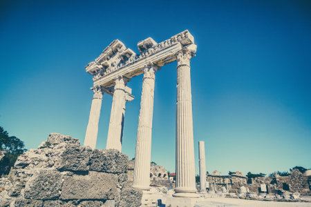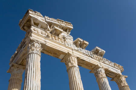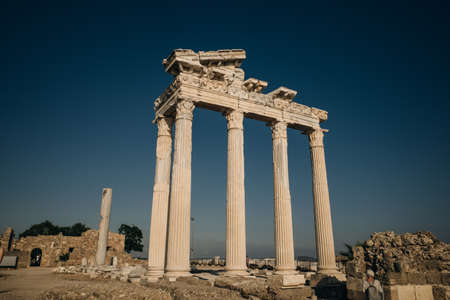 Amazingly Temple of Apollon ancient ruins. Apollon temple in Side antique city, Antalya, Turkey.