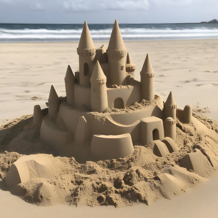 Idyllic Beach Scene with Sandcastle and Waves