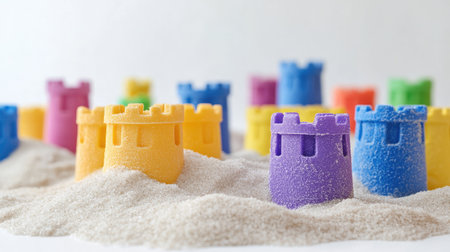 Sandcastles arranged in a grand sand kingdom.