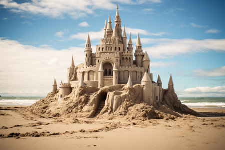 Majestic Sandcastle on a Sunny Beach Day