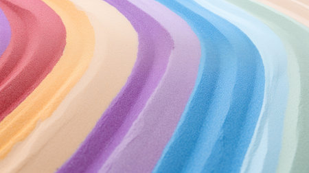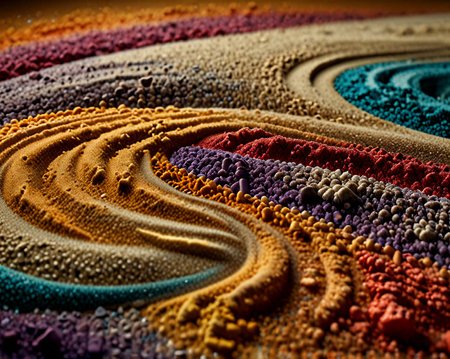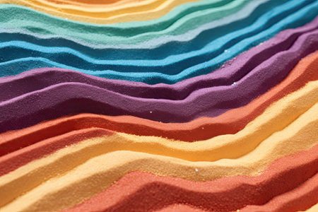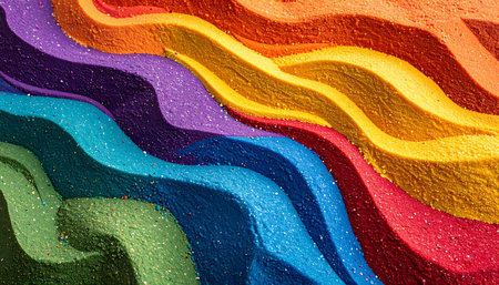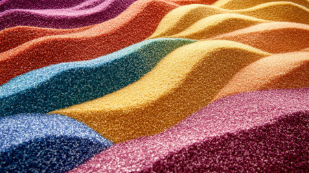 This vibrant image features colorful waves of sand, creating an eye-catching abstract pattern. Perfect for art projects or as a decorative background.