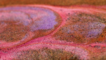 Mixing colors. Fluid magic. Creative painting. Pink orange stream of liquid paint floating and mixing together with glitter in macro shooting.