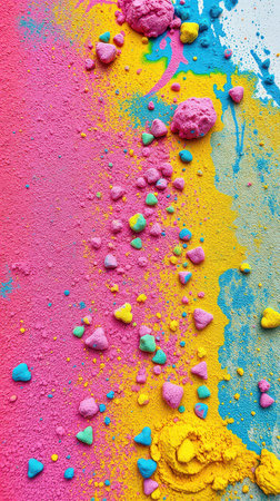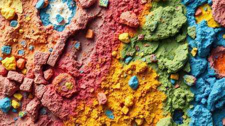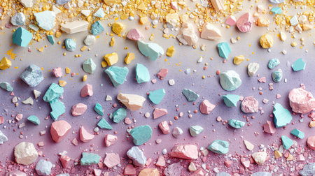 Colorful crushed candy creates a vibrant texture resembling a playful abstract artwork