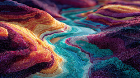 This vibrant image features colorful waves of sand, creating an eye-catching abstract pattern. Perfect for art projects or as a decorative background.