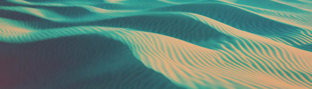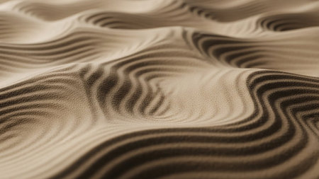Close-up view of undulating sand dunes with intricate ripple patterns and soft light creating a natural texture with earthy tones.