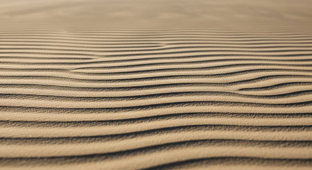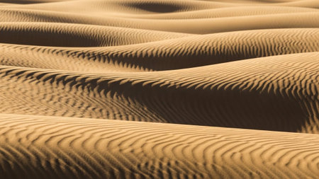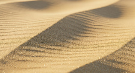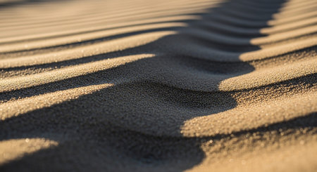 Sunlight illuminating windswept sand with gentle ripples creating a beautiful natural pattern in a desert environment, perfect for nature and travel related projects