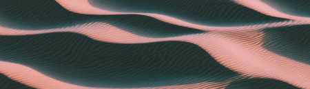 Photo showing wavy sand dunes with rippled texture and shadow patterns. High resolution image suitable for...