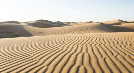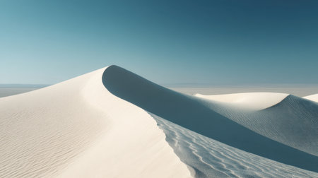 Captivating desert landscape showcasing smooth sand dunes under a clear blue sky. This image evokes tranquility and the beauty of nature's patterns.
