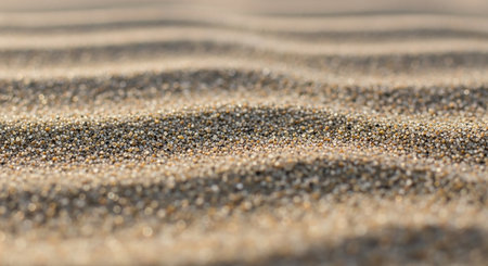 A mesmerizing close-up view of textured sand dunes illuminated by soft lighting, showcasing the intricate patterns and warm tones of a serene coastal environment.