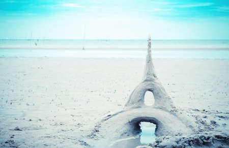 Sandcastle on the beach. Concept of summer vacation and travel