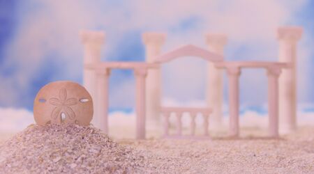 Seashell on Tropical Beach With Roman Style Ruins