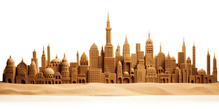 city skyline made of sand on white background. beautiful Generative AI AIG32