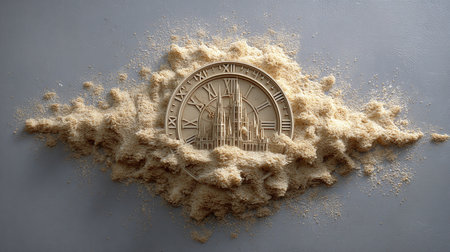 Time is money concept. Clock made of sand on gray background.