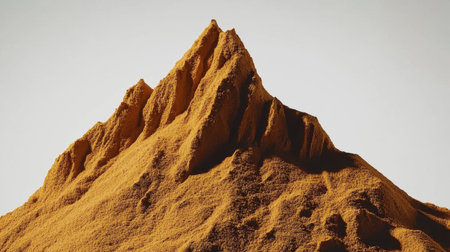 This striking image features a mountain peak of finely ground yellow spice powder, beautifully contrasted against a soft background, emphasizing its textures.