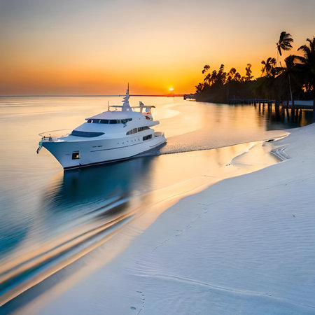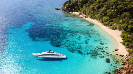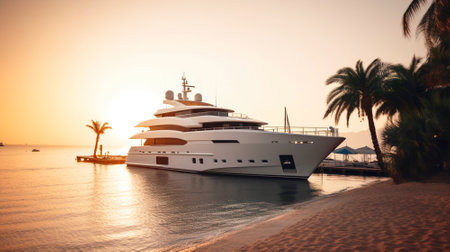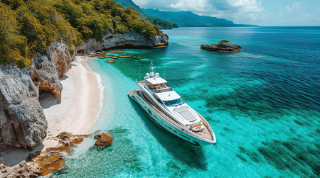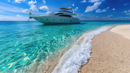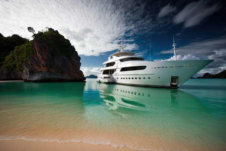 Luxury yacht anchored near sandy beach