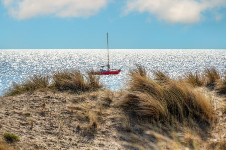 beautiful sailboat sailing on the sea.