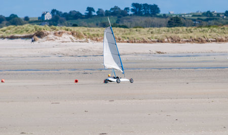 Sand yachting lessons on a beach in Finistre in Brittany.