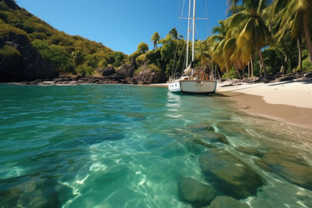 Yacht in the sea near island in Indian ocean