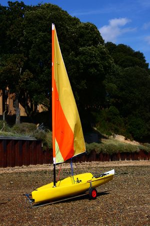 Sailing dinghy with bright orange sails