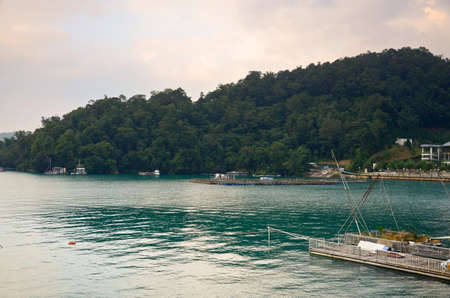 Sun Moon Lake in the morning with mist in Taiwan, Asia.