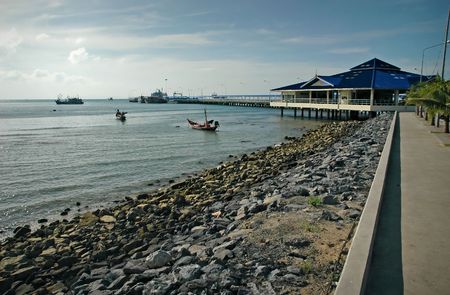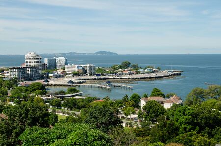 CHONBURI, THAILAND - 1 JUNE : View of Sriracha city at seaside on 1 June 2019 in Sriracha, Chonburi, Thailand