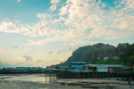 Sunset sky over the fishing village in Sandakan Borneo Malaysia